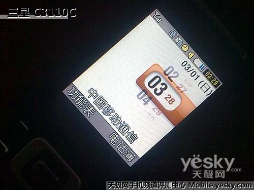 三星 C3110C手机采用2.0英寸的TFT屏幕,分辨率为176×220,屏幕色彩达到了26万色,屏显效果十分出色。