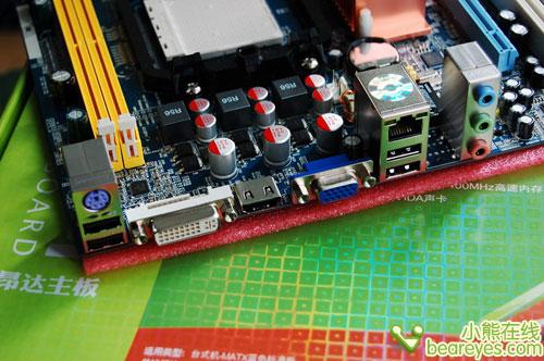 扩展部分,主板提供外接PCIE X16插槽,当插接HD2400/2600显卡时还能打开HY CF混合交火模式,令独显性能再提升40%。