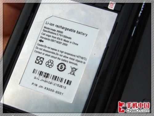 i-mate X9000所配备的是一块1350mAh锂离子电池,一般使用情况可以维持约两天的待机续航。由于大屏幕和较高主频处理器的引入,i-mate X9000耗电较为厉害,待机时间尚需加强,