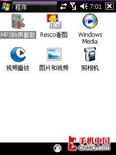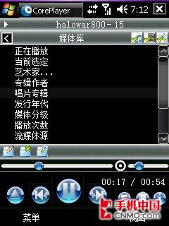 在i-mate的程序菜单中有专门的一项名为多媒体的分类,其中包括Windows Mobile内置的Windows Media Player及其它多媒体程序,其中居然有CorePlayer这一Windows Mobile平台使用甚广的视频播放器,可以说CorePlayer好比桌面电脑中的暴风影音,可以播放多重视频格式,内置该软件之后,用户播放视频会更加得心应手。
