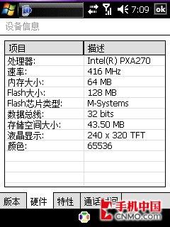 这里说的是其处理器的内存的详细配置参数,实际使用中,装载Windows Mobile 6.1系统的i-mate X9000运行非常流畅。