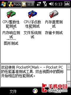 前面我们讲到i-mate X9000的配置处在主流水平,那么实际表现如何呢?我们通过PocketPCMark这一较为通用的软件进行了测试,下面是测试结果。测试内容包括CPU、内存相应速度、文件系统和图形系统等与手机使用效率最相关的参数。