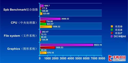 上面是DEC A6的硬件测试结果,各项数据在表格中都有详细显示,这里我将DEC中恒A6和琦基的三款PPC i7、i8和i9进行对比。整个结果来看,DEC中恒A6的各项得分都要高于其他三款手机。