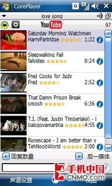 总得来说,CorePlayer还是比较完美的,除了支持众多格式,还内置YouTube视频接口,可以连接WIFI直接观看。不过笔者也发现另外一个问题,即使播放相同的文件,相比TCPMP,CorePlayer的音质表现要逊色很多。