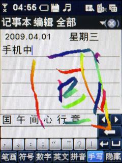 酷派手机一直比较强调手写功能,这一点在S100身上得到了很好的发扬,酷派S100这块2.4英寸QVGA(240x320像素)分辨率的显示屏幕上可以同时书写多个汉字同时识别,这无疑是加快了汉字手写输入速度。