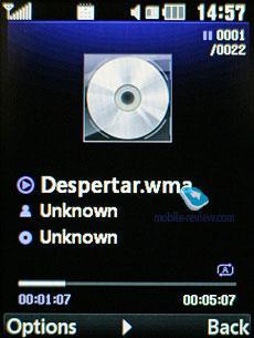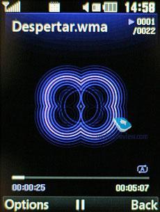 LG GD330内置了音乐播放器,可以根据艺术家、专辑、流派等来划分,均衡器有五个选项,但无法自定义。支持随机播放和重复播放,支持专辑封面显示。手机的耳机插孔是采用了标准的3.5mm接口,这一点非常好,并支持蓝牙立体声,音乐功能处于中等水平。