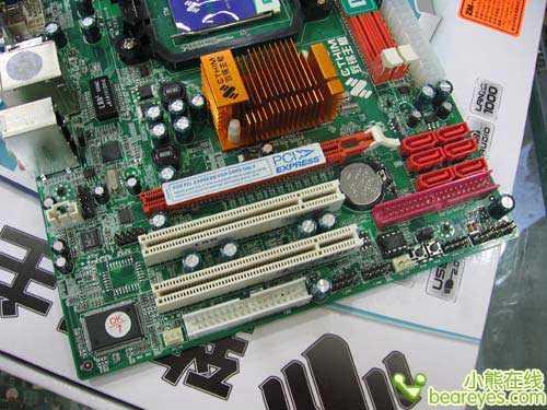 扩展部分,主板提供1条PCIE x16接口和2条PCI接口,这些接口可以满足用户的升级扩展需要。磁盘方面,主板提供6组SATA2接口同时还保留了1个传统的IDE接口,方便了用户的使用。