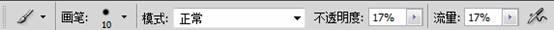 为了修复受损的图像部分,我们需要减弱受损区域的锐化效果。使用画笔工具在锐化蒙版上进行涂抹,我们就能够自如地控制图像受损的区域。为了能够更加平滑地控制,我们将画笔的不透明度和流量都设置为较低值(图9),并设置画笔颜色为黑色,用来屏蔽掉图像中过多的锐化效果。