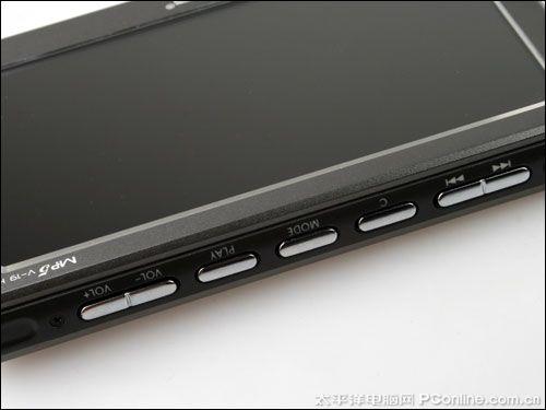 索爱V19HD的主要按键分布在机器的上侧,在机器的左侧分布着有一个电源开关与一个AB复读开关,除此之外,还有一个AC电源插口与USB接口。在索爱V19HD的右侧则有耳塞接口、TV-OUT接口与MINI SD卡扩充口,可以看出索爱V19HD的接口分布是经过悉心设计的,充电借口与音频和视频接口不冲突,AC电源借口的配备也可以让机器边充点边工作,效率更高。