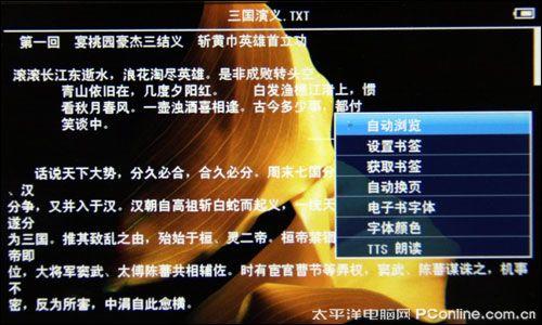 索爱V19HD支持大容量的TXT文件打开,对于自动翻页、字体大小与颜色等基本功能都能支持,除此之外,对于电子书阅读功能,索爱V19HD同样有支持。