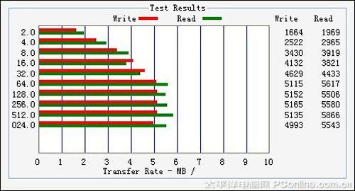 索爱V19HD的最高写入速度为5165KB/S,最高读取速度为5866KB/S,这样的速度表现比较平均,对于平时使用也是足够的。