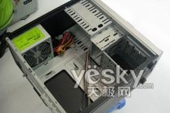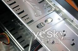 机箱的EMI弹片做工扎实,折缘处理比较到位,同时也没有明显的毛刺现象,但钢板略显得单薄,内部整体做工尚属中等水平。
