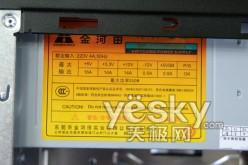 金河田ATX-355BT电源的铭牌并不十分规范,例如缺乏规范版本和额定输出功率等信息。这款电源采用了单路+12V输出,最大功率为300W,符合3C认证。电源采用了8CM风扇,提供24+4pin主电源接口、两个SATA接口、两个D4pin接口和一个软驱接口。