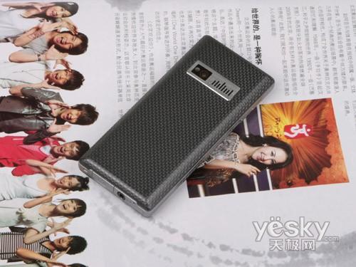 A113手机的面部采用了目前最流行的材质——铝合金拉丝面板,这样的设计能提高手机的感官,并且不容易留下指纹,所以是很多手机产品的首选。手机侧面和背部都采用的是工程塑料,但独特的菱形和三角型图案彰显高贵。手机侧面为一圈银色菱形条纹,音量大小键和照相键分布在手机的一左一右。