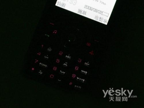 A113的设计好像更偏向与女性。键盘采用了条纹装的设计,材质为透明的工程塑料,键盘灯打开时发出玫瑰红色的灯光,在晚上使用时十分漂亮。有的朋友可能担心手机按键过小,会影响使用。小编在使用A113发了几条短信后,感觉这种按键非常好用,误操作几率并不高。而圆形导航键附近的音乐快捷键和短信快捷键和导航键间距有些小,手指大的朋友们可能会误操作。