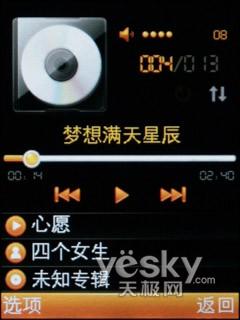 在音乐播放方面,A113支持重低音、高音、摇滚乐等7个音效设置,应该能满足对音质要求不高的消费者需求。手机设置的2.5毫米接口耳机让我们有了一丝遗憾,不过手机支持歌词同步显示和蓝牙立体声耳机,这两点在手机中还是很少见的。小编在试听后感觉手机低音效果不错,中音表现的中规中矩,音质水平处于专业MP3播放器中低端的水平,在手机中,音质水平为中等。手机支持歌词同步显示,这样的设计还是很贴心。