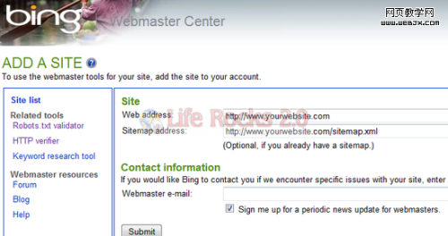 1、如果你想要把你的网站提交给Bing,那么前往这个地址。然后你需要用你的Windows Live ID登录,打开网站管理中心。