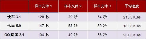 简评:测试结果耐人寻味,通过上面的数据我们可以明显看出,新版迅雷的确在下载速度上出了一些小问题(之前很多网友都曾反映过)。在HTTP下载测试中,竟然排在了三款软件的最后,甚至还不及名气比自己小很多的QQ旋风2。不过在BT下载环节,它那强大的选种能力被很好地表现出来,尤其在针对一些资源较少的冷门种子时,更加明显。而相比之下,快车的表现也很抢眼,虽然BT下载能力仍逊于迅雷,但HTTP上的夺魁仍然向我们展示出这款软件曾经拥有的辉煌。至于后起之秀的QQ旋风2,虽然在HTTP等普通下载上也很强悍,但BT方面仍然有所欠缺,相信这也是日后亟需完善的一个重点。