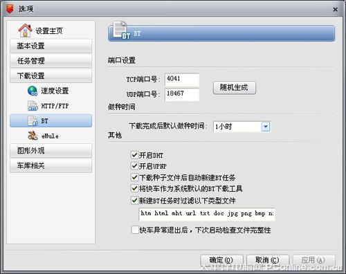 多协议互通也是当今下载软件的特色之一,包括HTTP、BT、eMule、FTP等都已经成为了标准配置。同时各软件在具体的协议设置上也绝不含糊,诸如随机变换端口号、自动开启DHT、允许upnp、自动过滤非主要BT文件等功能,都能在各款软件中找到,同质化现象十分严重。
