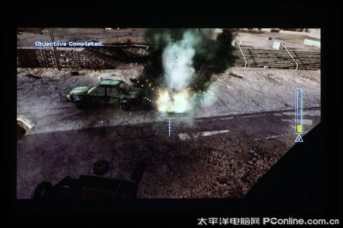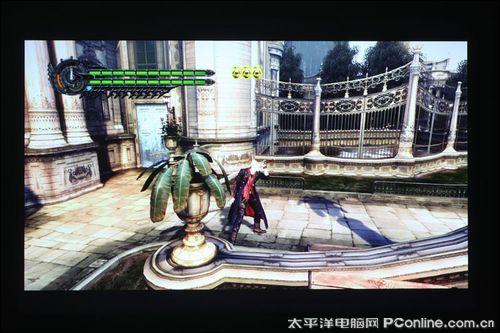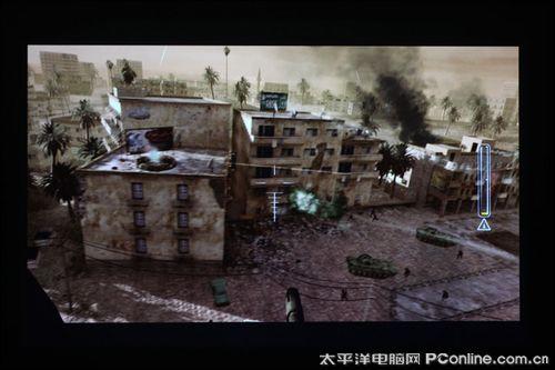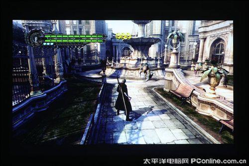 笔者评测用的游戏是PS3版《鬼泣4》和《使命召唤4》,《鬼泣4》追求的是动作类游戏的爽快感,游戏中的打斗场面,动作连续性很强,佳能WUX10不但给用户带来超大的视觉画面外,整个游戏过程中基本感觉不到拖尾现象。然后是《使命召唤4》,在战斗画面中,子弹、木屑横飞,爆炸后升起的灰白色烟幕浓重,佳能WUX10画面显示真实感很强,绿色杂草、树木还原清晰逼真,大屏幕玩第一视觉游戏就是痛快。