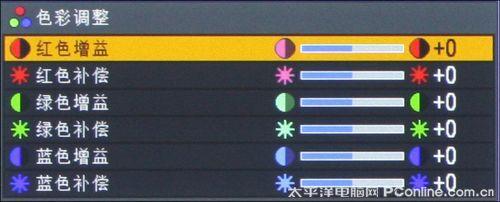 用户也可以根据自己的喜爱细微的调整R、G、B三色的色彩增益和色彩补偿。