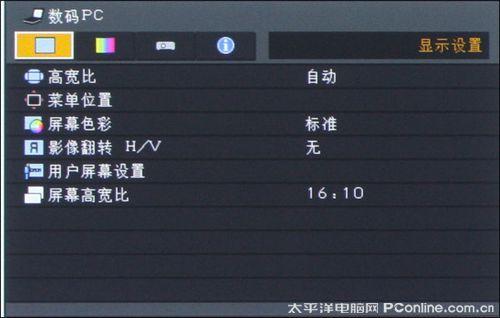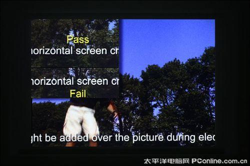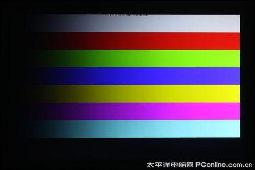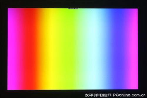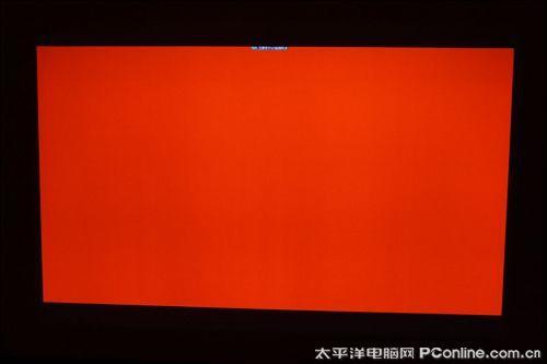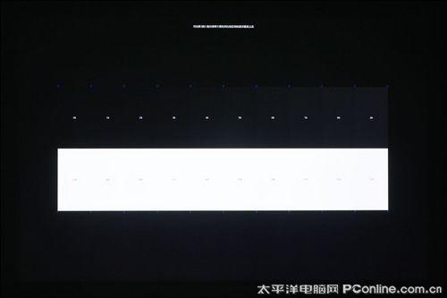 上面是我们在进行纯色测试时候所拍摄下来的画面,该画面影像大小约为92寸,信号输入源分辨率为1920x1200,这里我们先不评论画面的色彩纯度,我们留意一下上面测试屏摄图的上方。