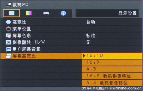 佳能WUX10标准分辨率为16:10的WUXGA (1920 x 1200),如果与1080P设备连接,则可以选择16:9 FULL HD(1920 x 1080)屏幕高宽比,除了这两种显示比例外,佳能WUX10还支持4:3普屏显示。
