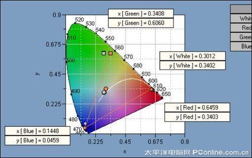 投影机分辨率设为1920*1200,通过DVI接口连接电脑,投影画面定在80寸大小,在测试前预热超过30分钟,在亮度测试中,我们把投影机亮度调节到60%的亮度,在其他色彩方面的测试中,我们把机器回复出厂设置后,设置成标准模式再进行测试。在评测过程中我们将显示画面分成9个区域,用分光色度计分别记录下每个区域中心点的对比度、Gamma、亮度以及色度。