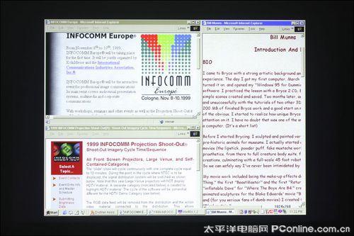 在1920x1200分辨率下,佳能WUX10双开浏览器的投影效果,字体精细且清晰锐利,超高的精细度能够满足对大屏幕影像精度有很高要求的用户。
