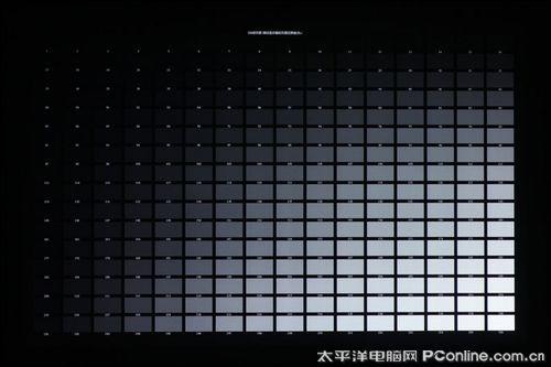 在测试完亮度对比度后我们再来看看暗部对比度情况,我们通常所测的LCD投影机黑色色块要在8号左右才能得以区分,而DLP投影机要稍好一点,约在6号色块左右就可以确认,而佳能WUX10采用LCOS技术,虽然1000:1的对比度并没有DLP的机器来得高,但在256黑白色格测试中表现却更加出色,2号色块就能够区分出来。