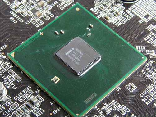 这颗芯片就是未来的中端主力P55,从面积上来P55看非常小。P55芯片不再内置内存控制器和PCI-Express控制器,大部分功能和南桥整合起来,主要负责系统的I/O等功能。