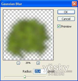 复制树冠层,并将下面一层的树冠层用高斯模糊滤镜做模糊处理。
