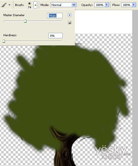 创建新的图层,用大尺寸的绿色画笔涂抹出树冠的形状。