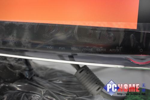 显示器开关与OSD控制键全部采用感应式操控,当手指靠近感应区域以后,散发红光的LED指示灯自动亮起,形成一道优美的弧线,相当美观。