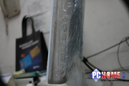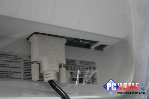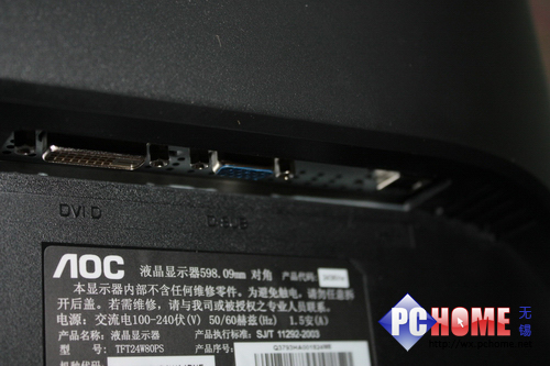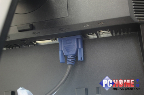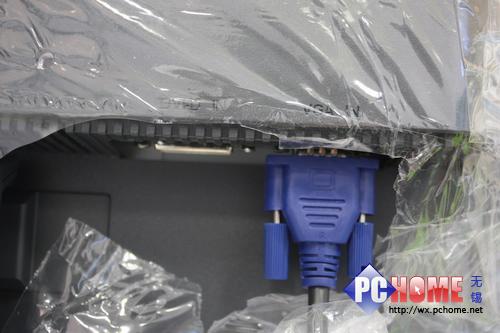 三星 P2370由于其采用了外置电源的设计,因此它的机身上并没有大面积的散热孔。另外,它的接口上比较独特,仅配备了DVI接口,不过随机附赠了DVI转D-sub线提供转接输出,相当贴心。