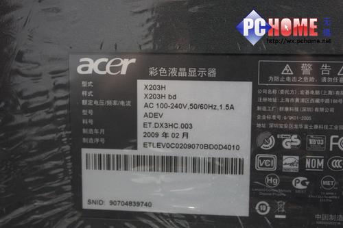 接口方面,宏碁 X203H同样是不缩水的双接口配置,并且通过了TCO'03认证。