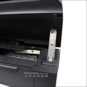爱普生ME360进纸口,能够装载80页A4普通纸,而4×6高质量光泽照片纸最多可以装载20页。左边纸夹能够在进纸口左右移动,使得不同尺寸的纸张能够垂直的进入机身内部打印单元。