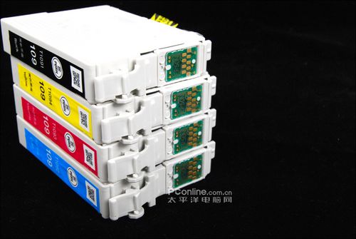 爱普生ME360同样是采用青色、黄色、洋红色、黑色四色分体墨盒设计,用完一色只需更换一色,有效节省了后期使用成本。