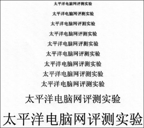 最左边1磅字体未能分辨,2磅字体“太平洋电脑网”基本能够辨别出来,这样的精度打印输出效果能够让人满意。