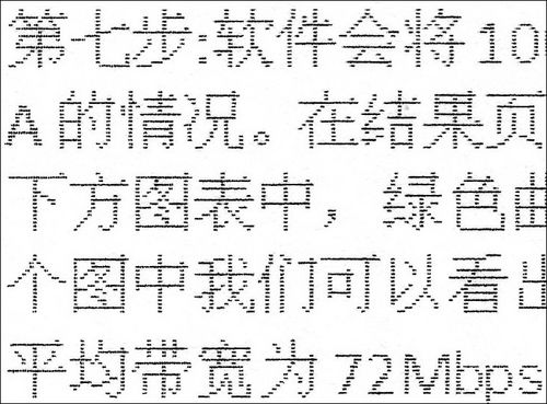 在经济模式下打印文本,打印速度要比文本模式下快上许多,而且非常省墨,从上面WORD文档打印样张可以看到,经济模式下的字体颜色要比文本模式下的浅许多,字体笔画并不连续,字体隔行打印,因此经济模式下打印速度和耗材使用量都要远优于文本模式,但由于字体精度不高、颜色较浅,如果长时间观看经济模式文档,很容易造成视觉疲劳。