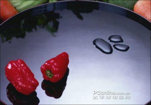 在第一张打印照片我们可以看到爱普生ME360在打印精度方面具有不错的表现,而上面这张照片主要用来测试打印机颜色还原和灰阶过渡效果。从上面局部放大图可以较明显的看到两只红辣椒具有不同的光泽,左手边的辣椒光泽感更强。另外观察碟子高光部分向碟边的颜色变化,发现灰阶过渡还算平滑,但墨迹分布有不均现象,可以看到一些微小的色块。