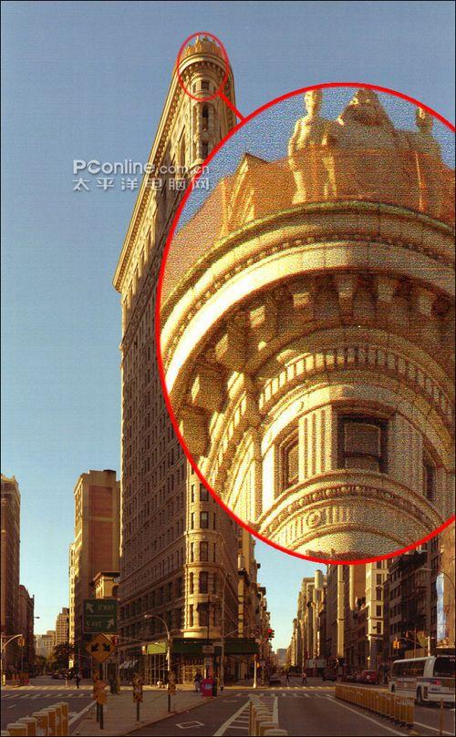 上图是爱普生ME360在最佳模式下打印的照片样张,圈中是600DPI局部扫描图,墙上的花边和条纹都能较为清晰的呈现,可见ME360在扫描精度和打印精度方面都有不错表现。