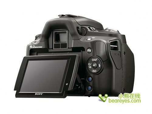 索尼A330体型相比A230要大一些,整体外形尺寸为128×97×71.4mm,重约490g,便携性极佳。机身手柄处经过巧妙的蒙皮处理,起到了防滑作用,持握感更为舒适。A330采用了2.7英寸可折叠式液晶屏,显示精度达23万像素,可翻转的角度扩充到往下翻转55度,往上翻转135度,实现更多创意角度的拍摄。内置亮度感应器,可在不同的光线条件下自动调节液晶屏亮度,使回放照片更舒适。在机身按钮布局设计上,两款相机也做了较大的修改,不但减少按钮的数量而且将之全部集中在显示屏右侧,这样一来也为单手操作提供了更多的便利。