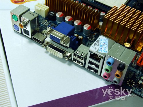 双敏UR790GX主板接口部分,提供了HDMI+DVI+VGA全规格的输出方案设计,满足不同用户各种不同的输出设备的需求,满足各种不同显示器的接口配置。同时还提供SPDIF/IN音频接口、同轴输出以及光纤接口。