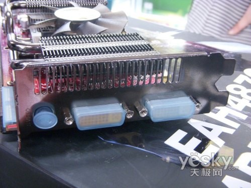 接口方面,显卡采用了中高端显卡常用的双DVI-I+TV-OUT,配合专用DVI转HDMI输出转接头即可方便的实现HDMI一线输出,完全满足高清与游戏玩家需求。