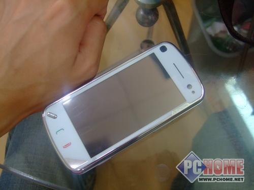 在外壳的材质方面,N97以塑料材质为主体,另外在机身正面四周包裹了一圈不锈钢圈(白色版本为银色镀铬),背面的磨砂质感塑料外壳的视觉效果还算满意,就整体来说,N97这样的设计比较趋于怀旧。手感方面,N97抛光处理的正面比较容易沾染指纹,不过质感柔软的机身背面和其他低档次的手机产品可以明显拉开差距。
