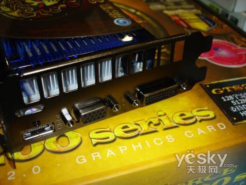 而在输出部分,影驰GTS250上将版显卡采用HDMI+DVI+TV-OUT的输出设计,能够轻松满足用户对搞清输出的要求。