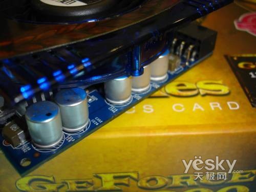影驰GTS250上将版显卡采用了一体化低噪音散热器,不仅仅散热鳍片远大于一般显卡采用的散热器,而且,大尺寸低转速的风扇噪音也很有优势。除此之外,显卡还采用了独立MOS管散热片。这样的设计跟我们在主板上常见的MOS管散热非常相似,更有利于降低MOS管温度,保证显卡的稳定工作。这样一来,这款产品的散热器可以说是非常突出。