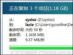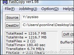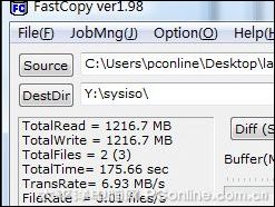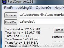 测试USB连接方式吞吐性能前,我们将EDMini上的一个共享目录映射为网络驱动器“Y:”。首先使用FASTCOPY进行读写测试,随后再使用VISTA进行读写测试。从测试结果可以看出,两者性能表现比较接近,整体表现不如LAN接连方式。在实地应用中,真正会用到USB连接方式的情况应该是很少的,大多数情况下,网络还是人们传输数据的首选方式。