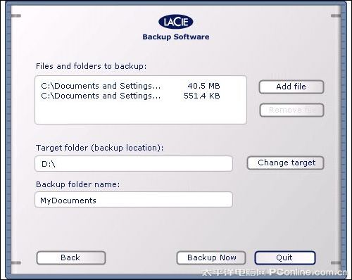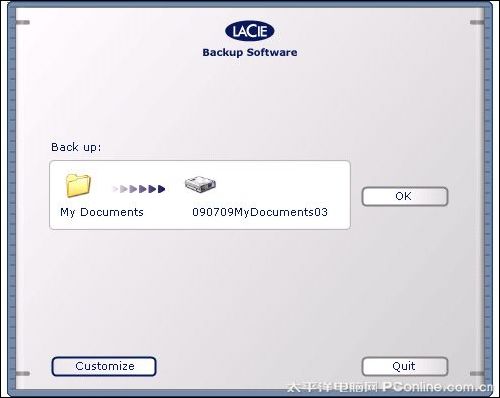EDMini的光盘中还提供了一个“一键备份”工具。首次运行,用户设定需要备份的项目,修改目标位置,可以是本地磁盘,也可以是EDMini上的空间,以后再运行该程序,如上图所示,只需点击一下“OK”即可完成备份工作。